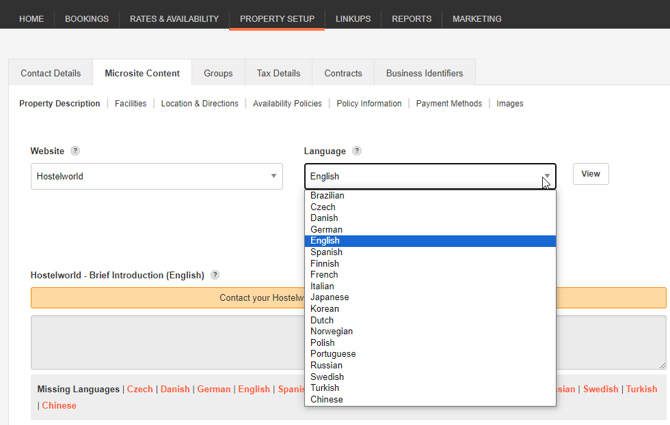 You can upload your property content in up to 19 languages directly through your Hostelworld Inbox